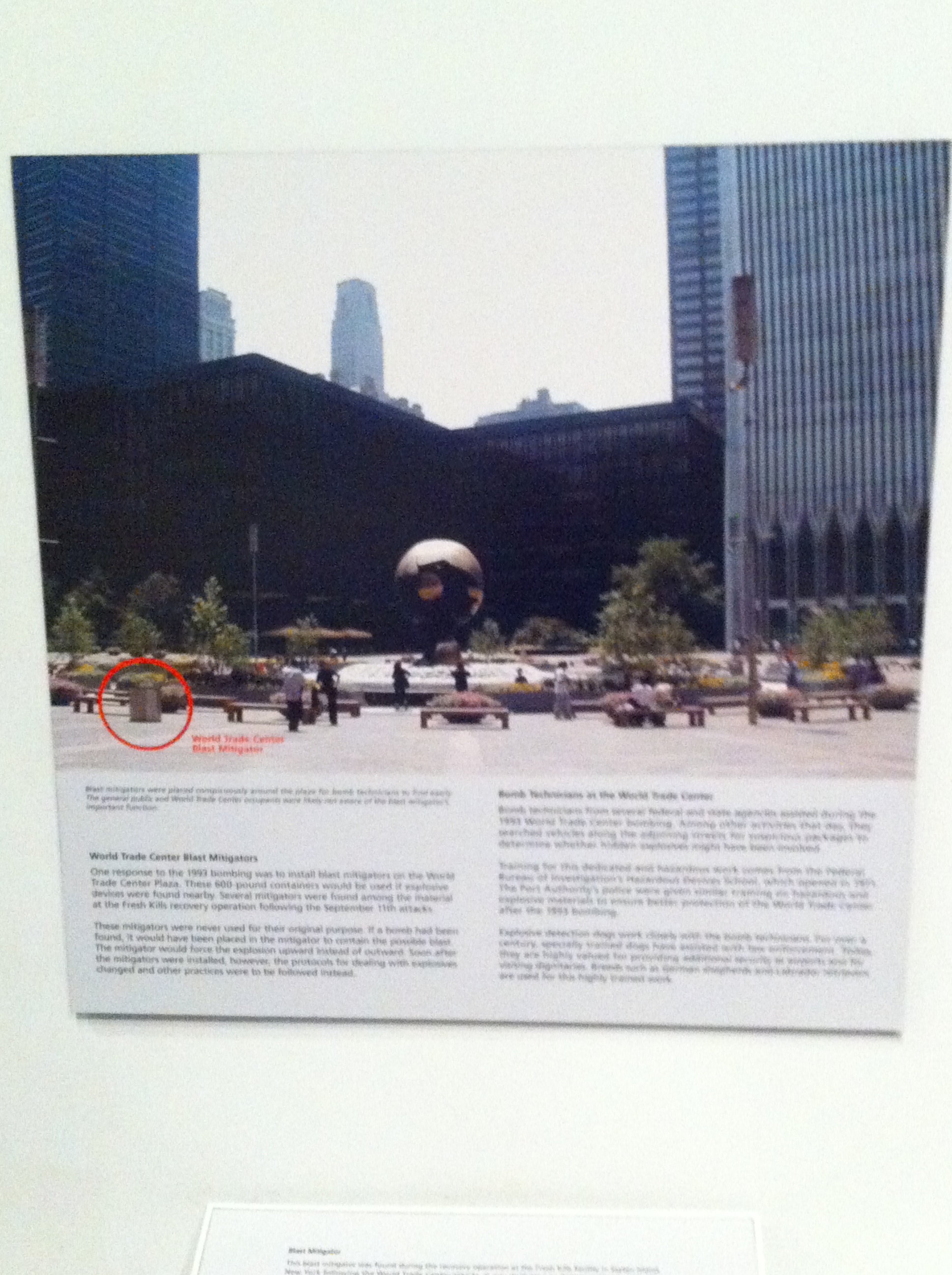 The week before I visited the State Museum (http://www.nysm.nysed.gov/) and New York Fallen Firefighters Memorial in Albany. My intention for visiting the State Museum was to see the 9/11 Family Room exhibit. The weird thing is I only visited the 9/11 Family Room once when it was in One Liberty Plaza and never went when it was on the site. I was curious to see the exhibit but in earlier years I had no need or desire to visit the space. I will say the State Museum’s September 11 exhibit is a good exhibit for children. I thought it tells the story without being overwhelming like the National 9/11 Museum. The area is bright, there are few large artifacts, information on all aspects of attacks, rescue and recovery. There is a section on rescue dogs and a statue to honor the dogs. I also learned something I hadn’t realized that at the original World Trade Center there had been bomb disposal units on the plaza. Already, then. I started wondering what on the new site is the equivalent.