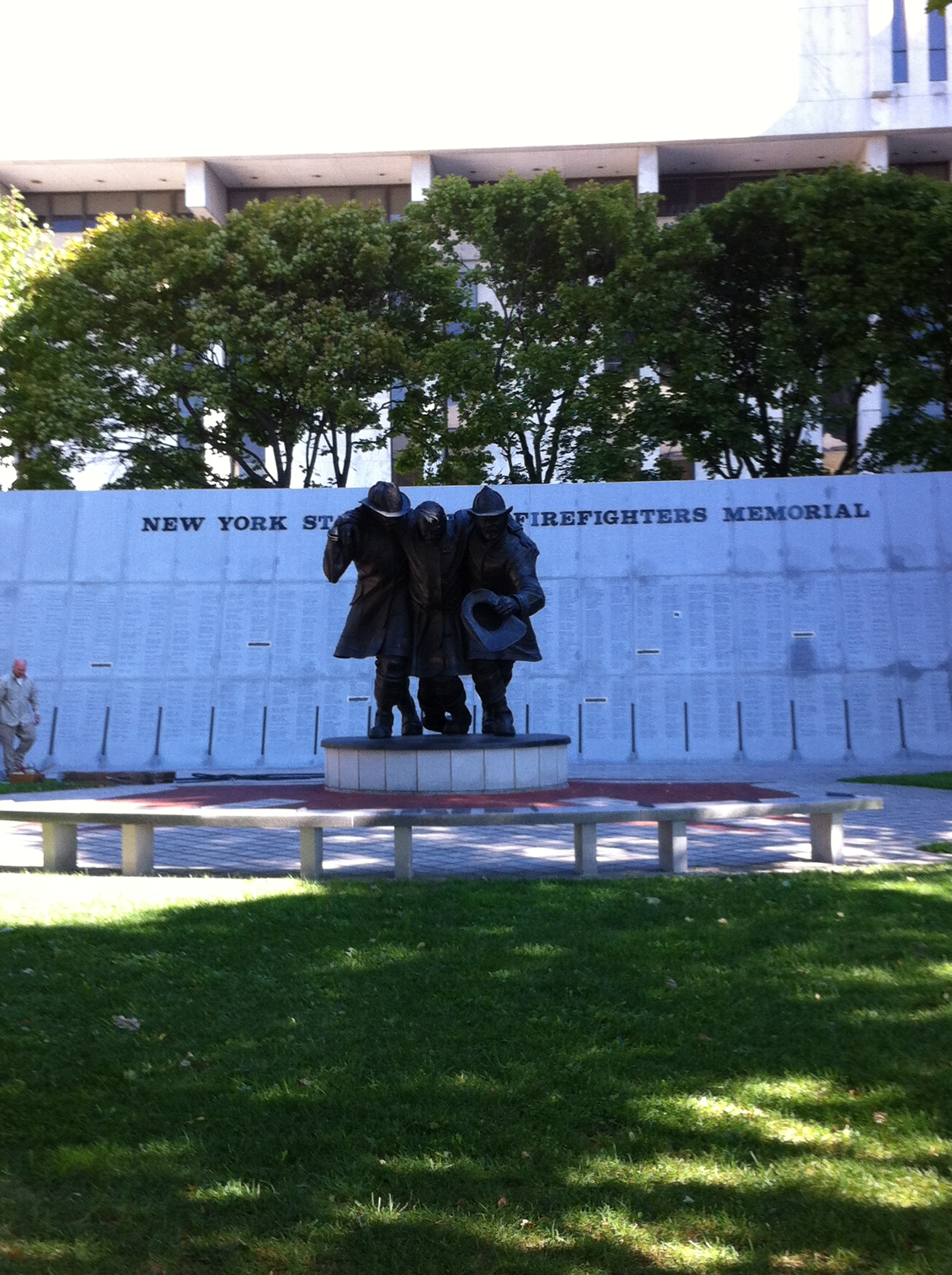 When you exit the museum if you walk all the way to the other side of The Egg you will come to the New York Fallen Firefighters Memorial. It is a beautiful memorial. As I approached I noticed a man “working” on the Memorial. I assumed he was fixing names but I would come to find out a few days later he was adding names. I asked him if the names were in any particular order. He said “no, after September 11 I added almost 400 names.” I commented that I recognized some September 11 names but they didn’t appear to be all together. He said “I just put them where they tell me.” “Thanks for your help. I will just keep looking.” After about 10 minutes of scanning up and down every panel I found Bruce’s name. At that point the man was leaving and I said to him “Thank you for the work you do here.” As he finished picking up his tools and headed towards his truck, he said “it is my pleasure.” Suddenly he stopped walking, turned and said “no that is wrong, it is my honor.”