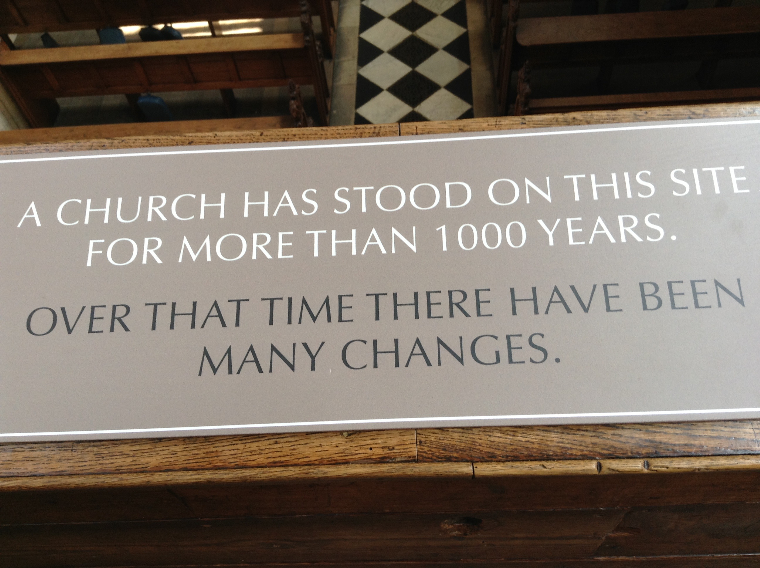1000 years what have you seen, who has walked through your doors – rich, poor, male, female, child, adult, believer or not? Have they come to find peace, comfort, out of curiosity, for photo ops, or for history lessons? Have they stopped to pray, to reflect, to wonder or not? Do they ponder the past, the present or the future? Do they know life has happened here? Oh, if your walls could talk? What would they say? Would your stories remind us that all through time people have laughed and cried here? Been baptized and buried. Would your past reveal that times change but people don’t? Would your walls tell of young and old sleeping instead of listening? Or marveling and understanding?Would the worries of their days block the power of the message? Has the truth been taught? Has the one you were built to honor been glorified in your midst? I think He has. Those who built you knew they may not live to see the building finished but they built you anyway. Oh, what a lesson is taught by the fact you still stand and His word still is spoken.